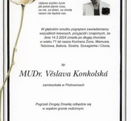 S lítostí všem členům SPS sdělujeme, že nás navždy opustila bývalá instruktorka a kamarádka MUDr. Věslava Konkolská. Budeme s láskou vzpomínat.